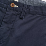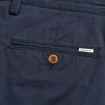 Cut in a stretch organic cotton blend with a twill weave structure, these shorts are designed for a slim fit. Featuring a mid-rise waist, these crisp chino shorts have a chambray lined waistband, a button front closure, coin pocket, double welt back pockets and corozo buttons.