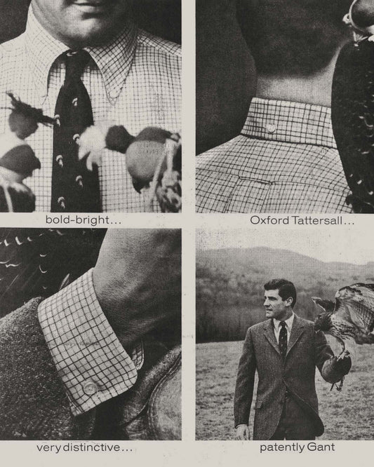 One of the companies that did fit the bill was GANT. At first all Marty and Elliot could afford were 1/8 page black-and-white ads every three months. Gradually they moved up to bigger and more frequent ads, featuring the oxford shirt in four different photos and four different situations, then ultimately running eight full-color ads in one year. The campaign spread the message that GANT produced the sort of shirts that the bright young sophisticates of the day were wearing.